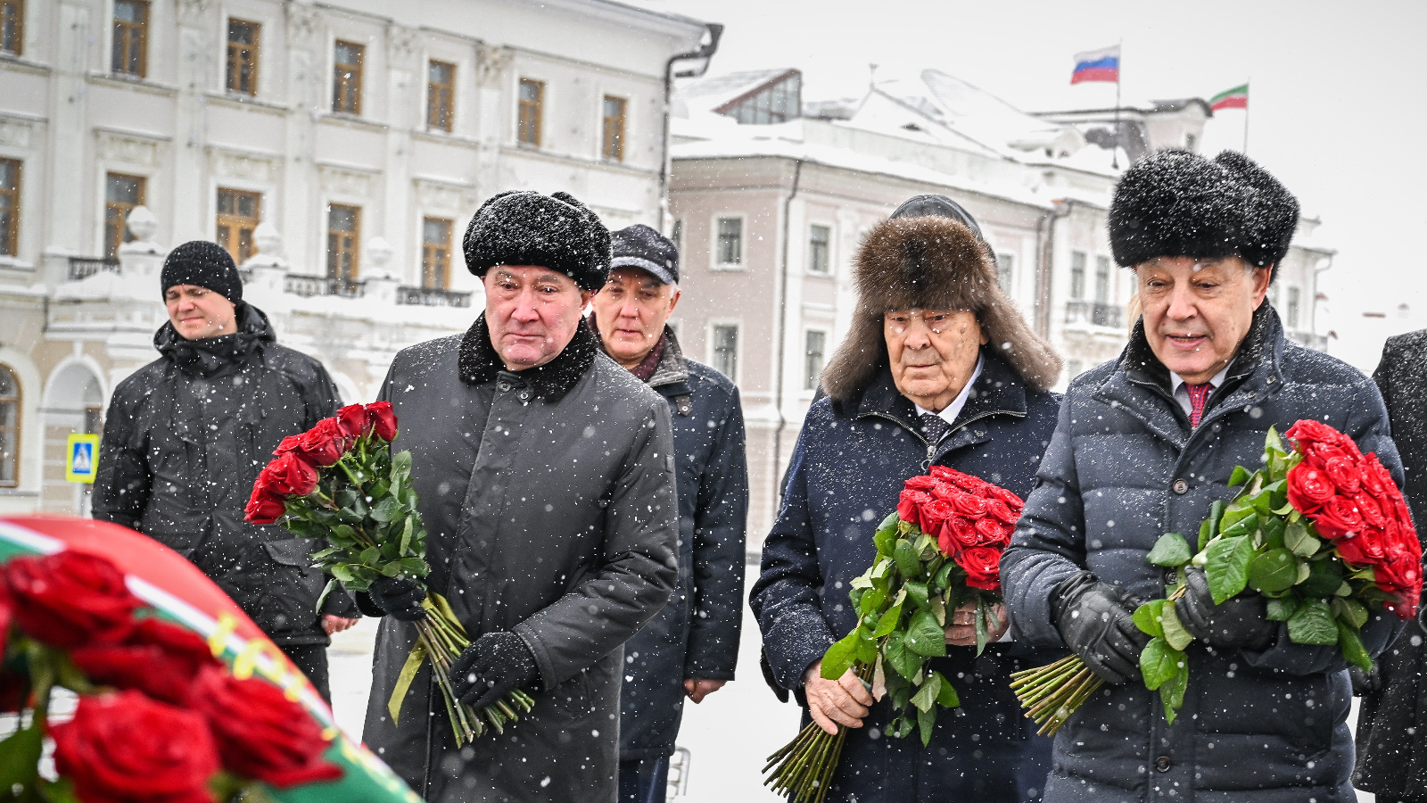 Сегодня утром состоялось возложение цветов к подножию памятника Мусе Джалилю на площади 1 Мая у стен Казанского Кремля.
