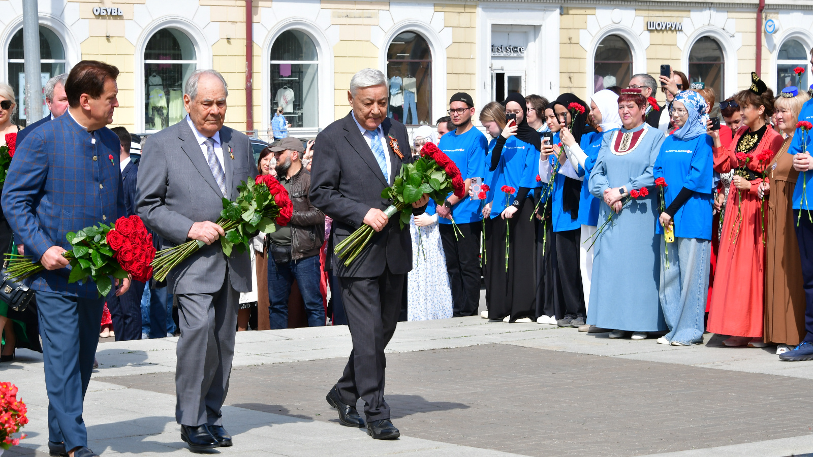 Бүген Татарстан Рәисе Рөстәм Миңнеханов һәм Татарстан Дәүләт Киңәшчесе Минтимер Шәймиев татар шагыйре Габдулла Тукай һәйкәленә чәчәкләр салды.